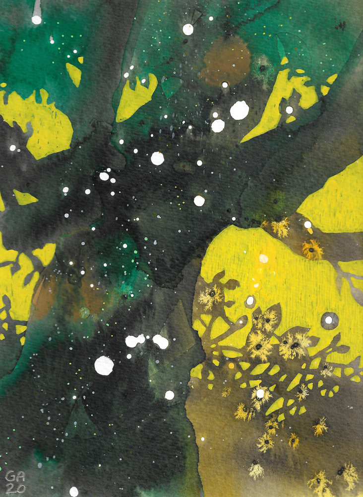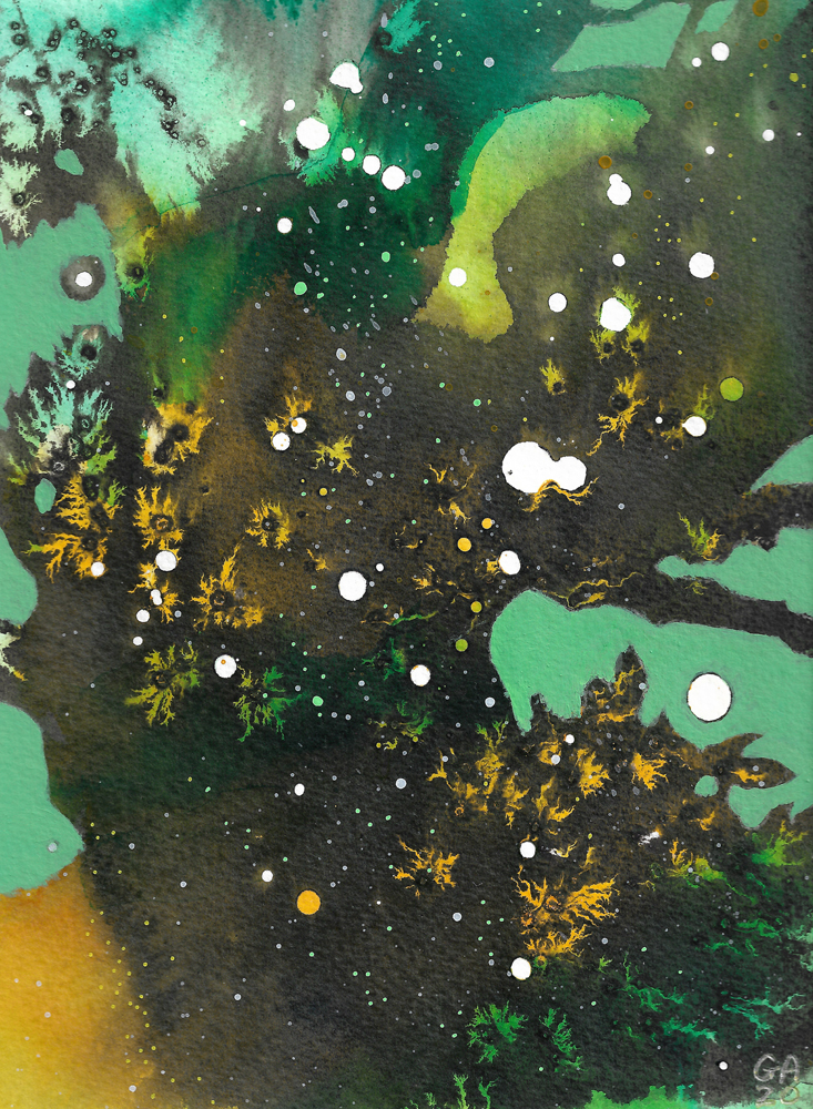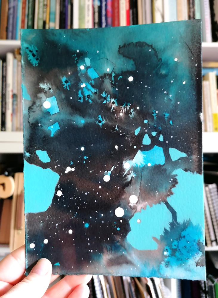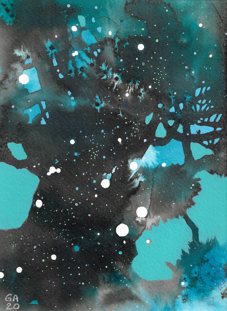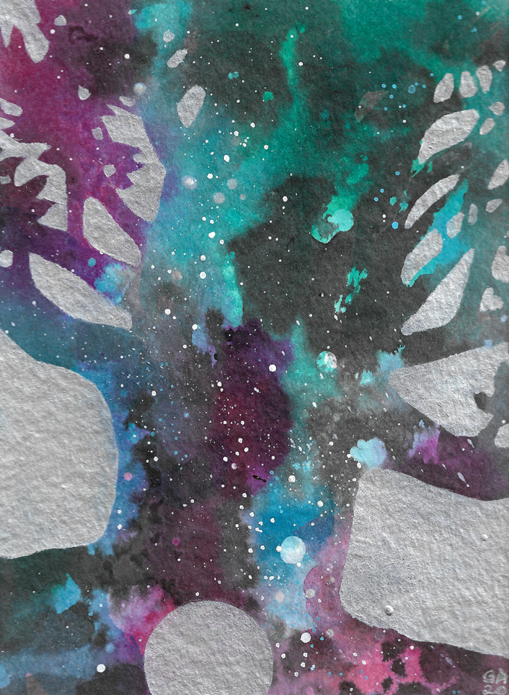 The Cosmic Tree series was created in 2020 using acrylics and inks on watercolour paper. Each painting will be posted flat and mounted, ready for you to place in your favourite frame. (Frames in photos are for reference only). Each mounted artwork measures 20×25.5 cm.